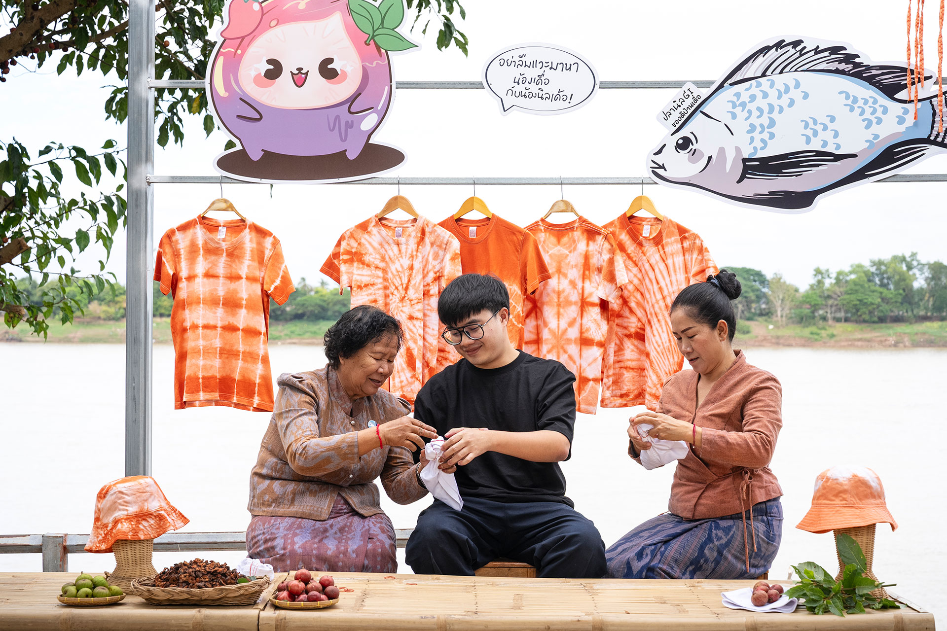 นักท่องเที่ยวที่มาเยือนจะได้ร่วมกิจกรรมมัดย้อมผ้าด้วยสีธรรมชาติจากผลและเปลือกมะเดื่อ สีที่ได้มีโทนอ่อนละมุน เป็นธรรมชาติ และไม่เหมือนผืนไหนเลย
