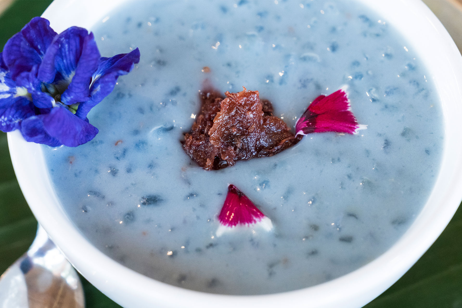 เมนูพื้นถิ่นที่นำข้าวเจ้าและข้าวเหนียวไปต้มกับกะทิ ปรุงรสหวานอ่อน ๆ ตัดด้วยเกลือเล็กน้อย ใส่ขิงและหอมแดง เพิ่มมะเดื่อสดไว้ด้านใน และโปะด้วยมะเดื่อเชื่อมด้านบน รสชาติหวานนุ่ม มันกะทิ กินแล้วรู้สึกอบอุ่นเหมือนมีใครค่อย ๆ โอบใจไว้ 🥥🍚