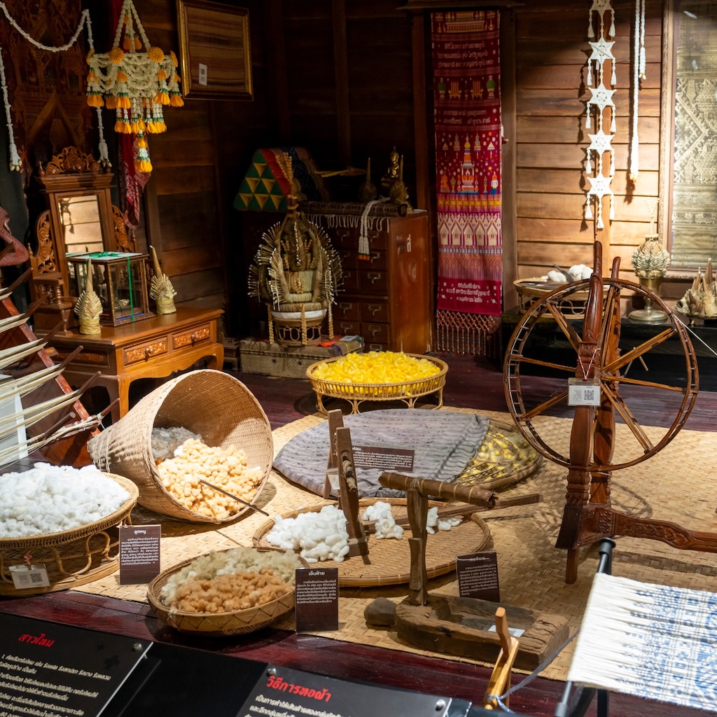 โซนนี้พาเราลงไปสู่ชีวิตประจำวันของคนอีสาน ตั้งแต่การปั่นฝ้าย เลี้ยงไหม สาวไหม สืบหูก จนถึงเทคนิคการทอแบบขิด ยก จก และหมี่ มีการจัดแสดงอุปกรณ์จริง เช่น หูก กี่ทอผ้า เครื่องมือปั่นฝ้าย ทำให้เห็นภาพชัดว่าผ้าหนึ่งผืนต้องผ่านกระบวนการยาวนานเพียงใด กว่าจะออกมาสมบูรณ์งดงาม 🏞️