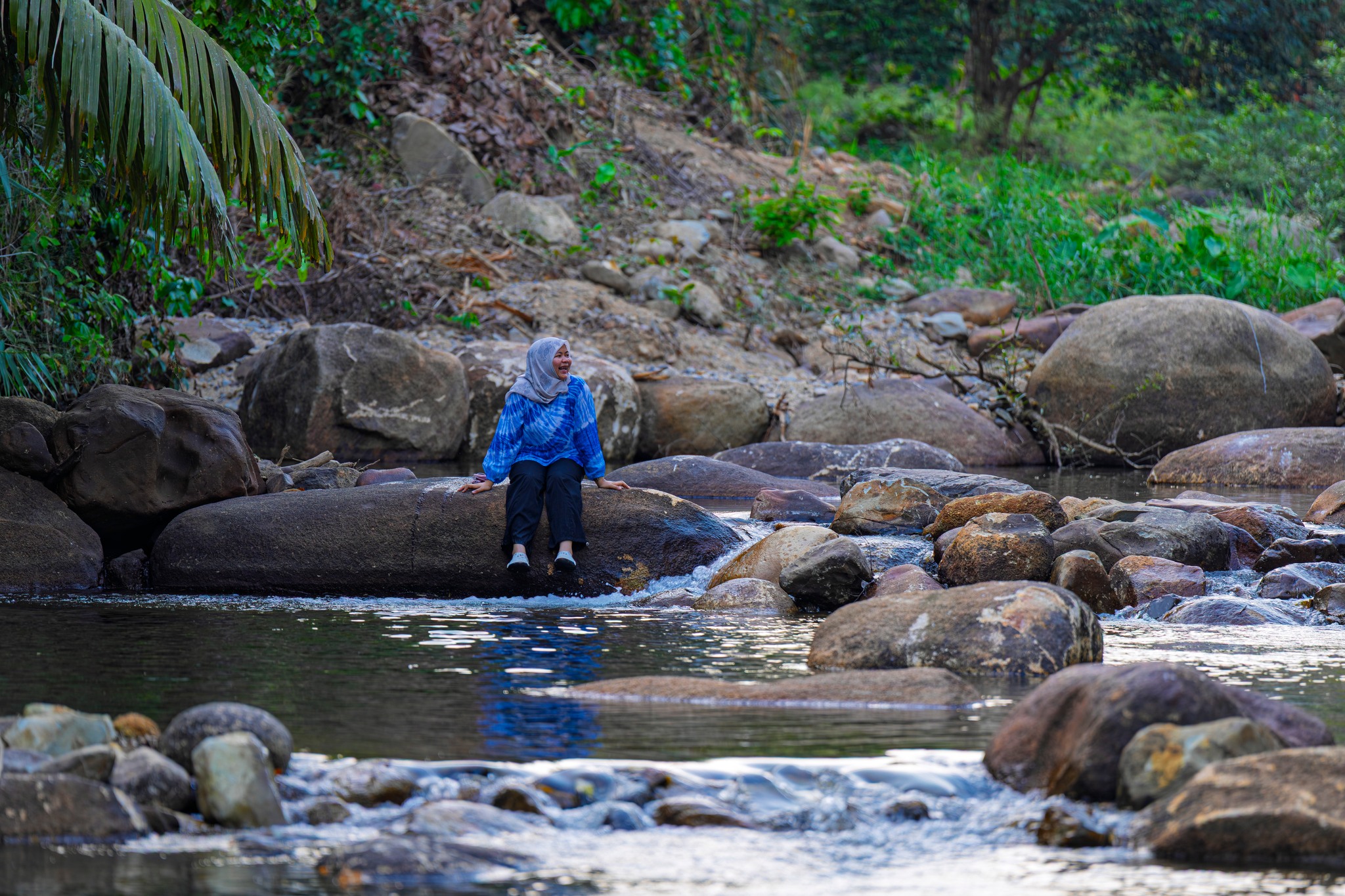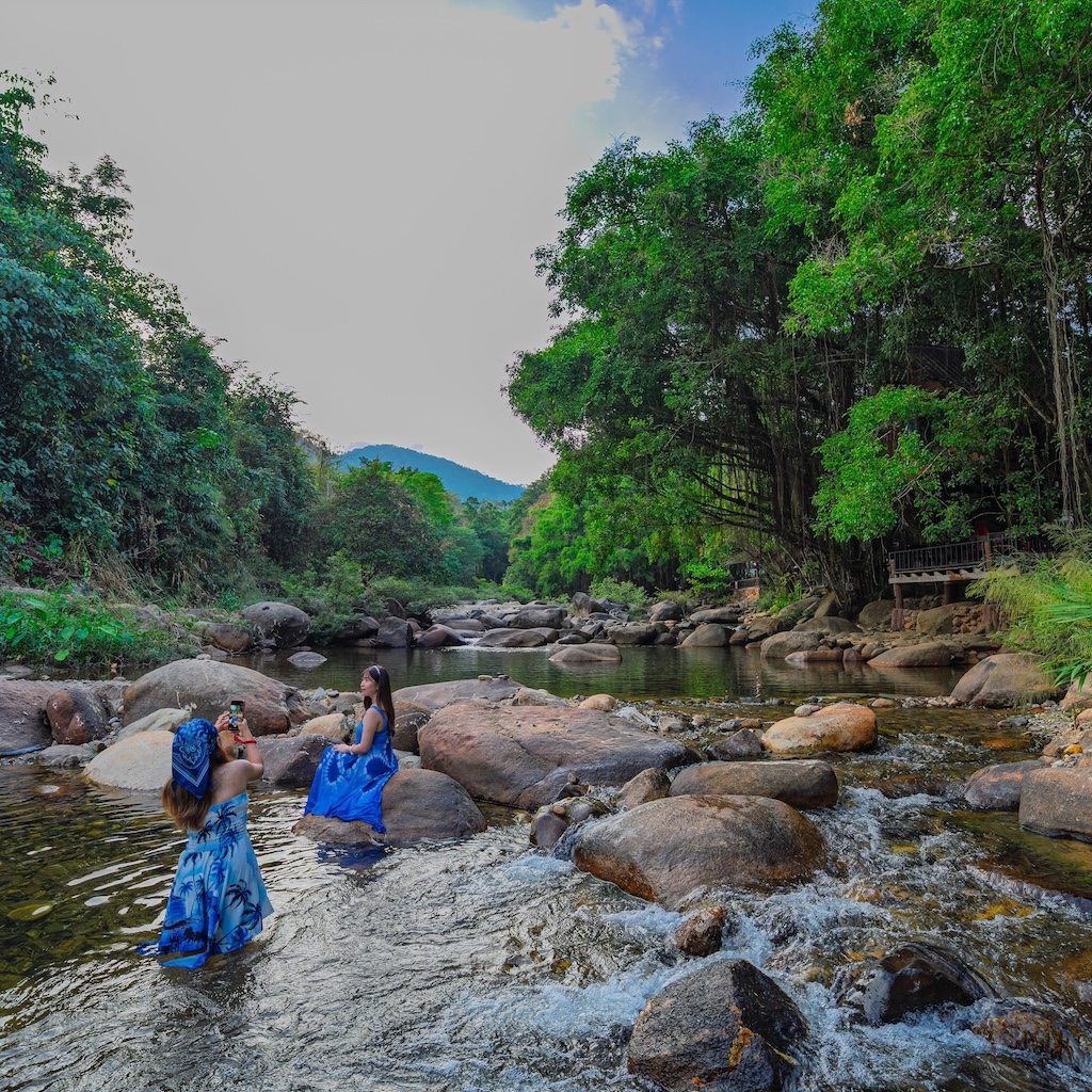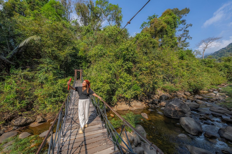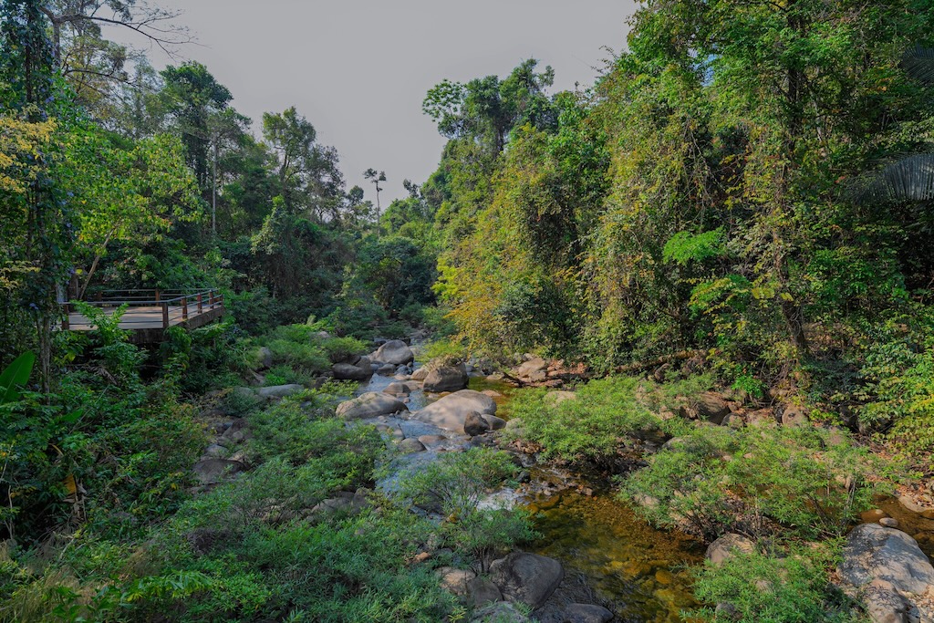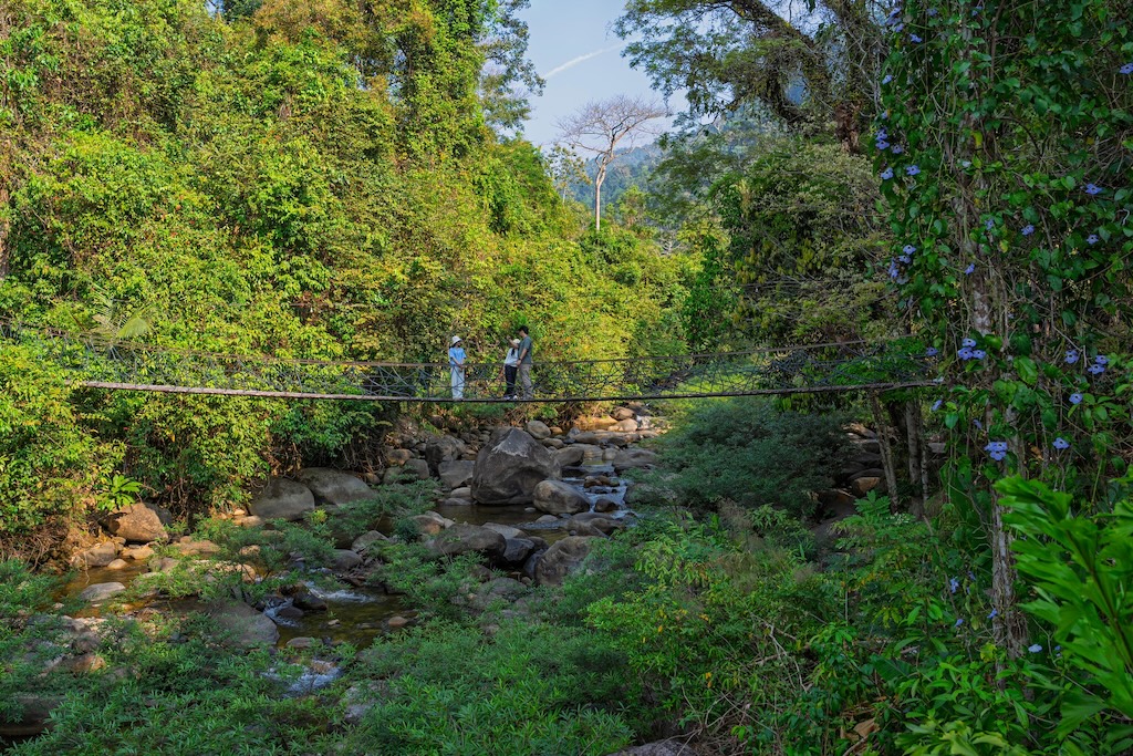 ไฮไลต์ที่ไม่ควรพลาดคือ “สะพานแขวน” ที่ทอดผ่านลำธารใสเบื้องล่าง เมื่อยืนอยู่บนสะพาน คุณจะได้เห็นสายน้ำไหลผ่านโขดหิน ท่ามกลางเสียงธรรมชาติที่ช่วยให้ใจสงบลงอย่างน่าอัศจรรย์ 🌉🌊