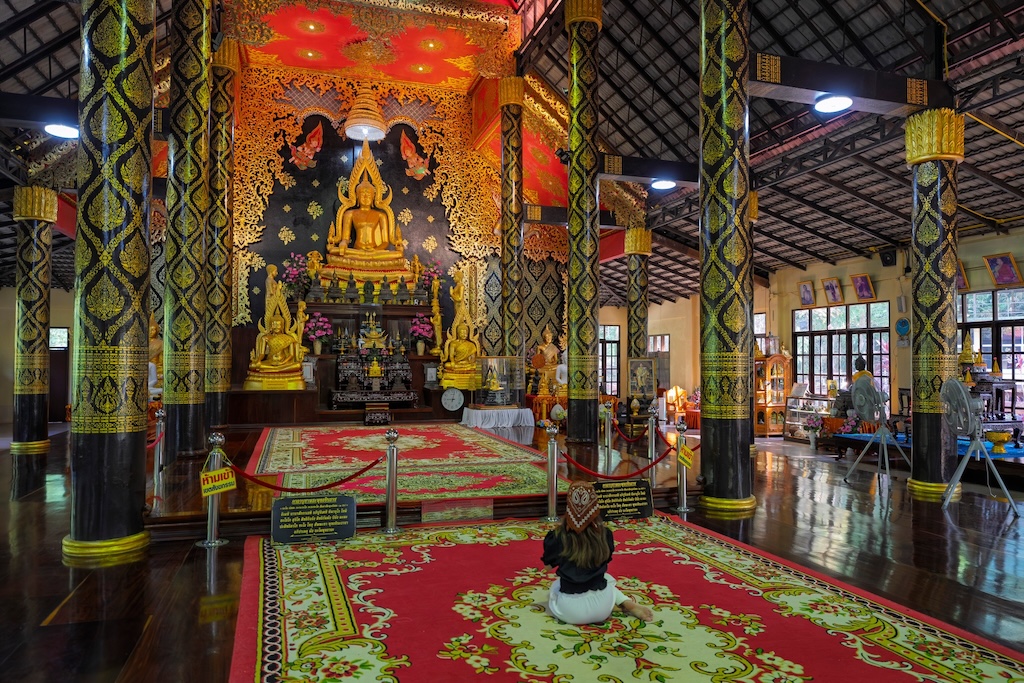 พระอุโบสถของวัดสร้างด้วยไม้ในรูปแบบเรียบง่าย แต่แฝงไปด้วยความงดงามแบบพื้นถิ่น ภายในประดิษฐานพระพุทธรูปปางมารวิชัยให้กราบไหว้เพื่อความเป็นสิริมงคล 🙏✨