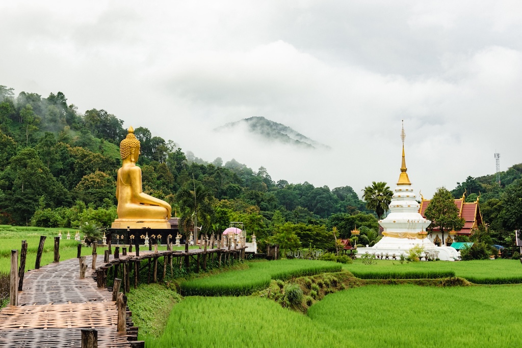 วัดนาคูหา แพร่ วัดกลางทุ่งนา เดินขัวแตะ สูดธรรมชาติ ขอพรสุขภาพกับพระเจ้าต๋นหลวง 🌾🙏✨ ดนาคูหา คือหนึ่งในจุดหมายที่อยากชวนให้คุณลองมาเยือนสักครั้ง 🌿 วัดนาคูหาตั้งอยู่ท่ามกลางทุ่งนาและขุนเขาในบ้านนาคูหา บรรยากาศเงียบสงบ อบอุ่น และเรียบง่ายแบบวิถีชุมชน เมื่อก้าวแรกที่เดินเข้าสู่วัด จะสัมผัสได้ถึงความเย็นใจ เหมือนเวลาเดินช้าลงโดยไม่รู้ตัว ลมพัดผ่านต้นข้าว เสียงนก และกลิ่นดินหลังฝนตก ทำให้ที่นี่เหมาะอย่างยิ่งสำหรับการพักใจและพักกายจากความวุ่นวายของเมือง ✨