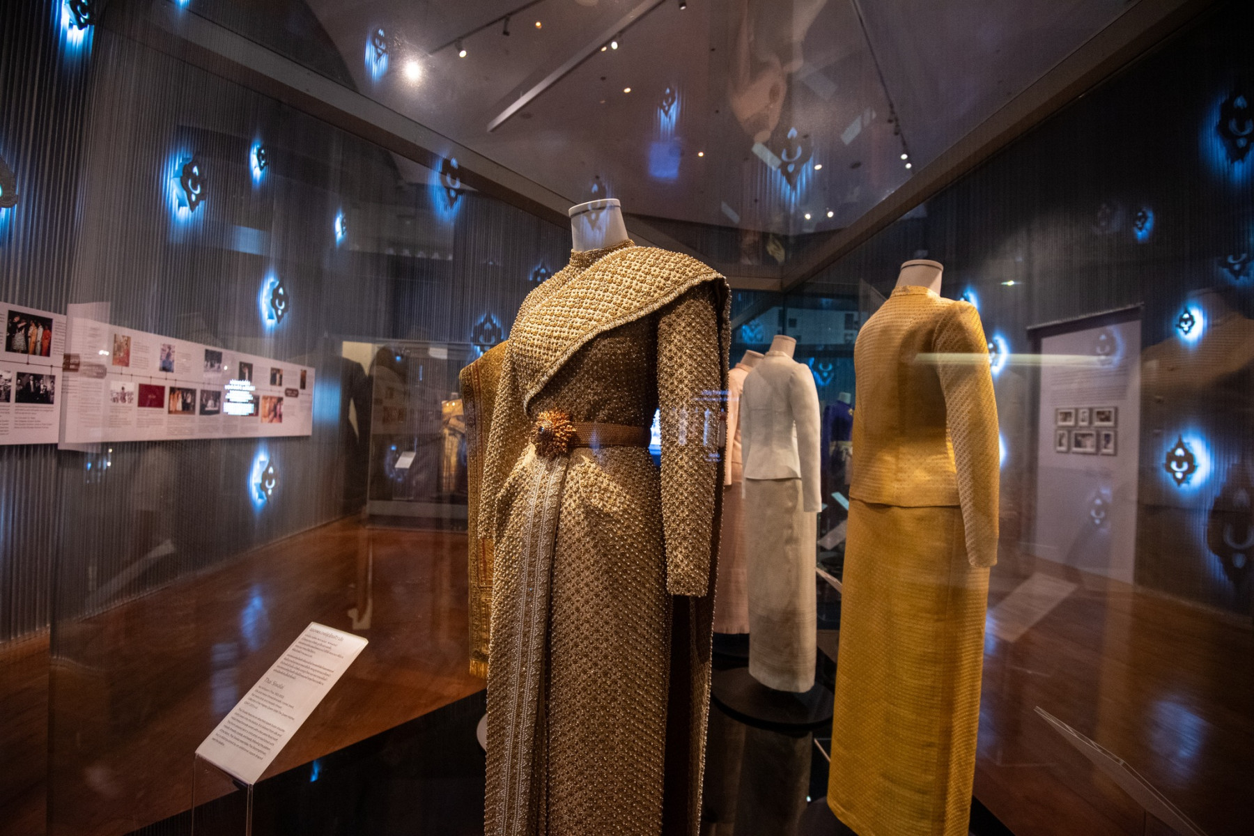ฉลองพระองค์แบบสากลตัดเย็บจากผ้าไทย ตั้งแต่ปี พ.ศ. 2503-2543 ที่สะท้อนพระอัจฉริยภาพด้านแฟชั่นและการอนุรักษ์ผ้าไทยในเวทีนานาชาติ