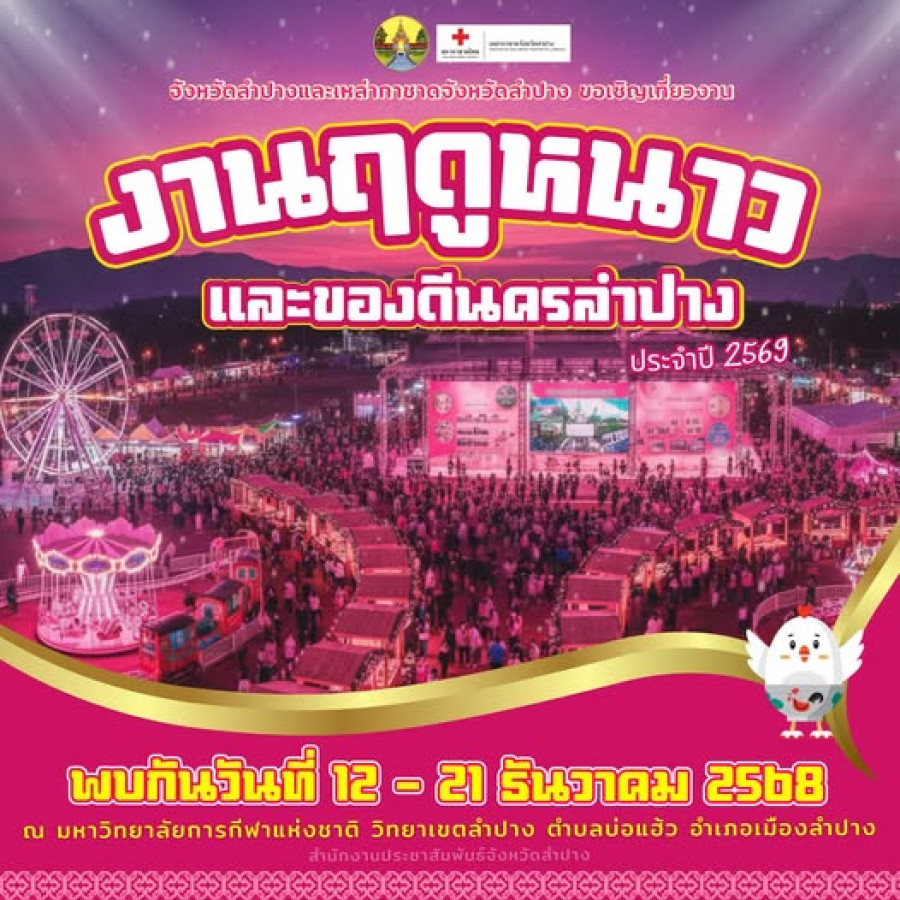 ชวนเที่ยว “ฤดูหนาวและของดีนครลำปาง 2569” สนุกกับคอนเสิร์ต สวนสนุก และของดีจากทุกอำเภอ ดูรายละเอียดได้ที่ https://www.thailandtravel.app
