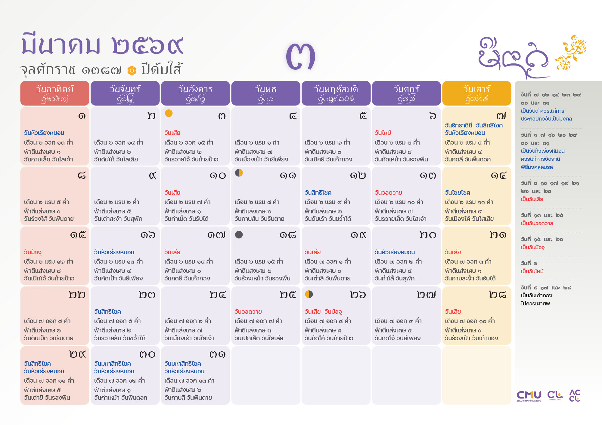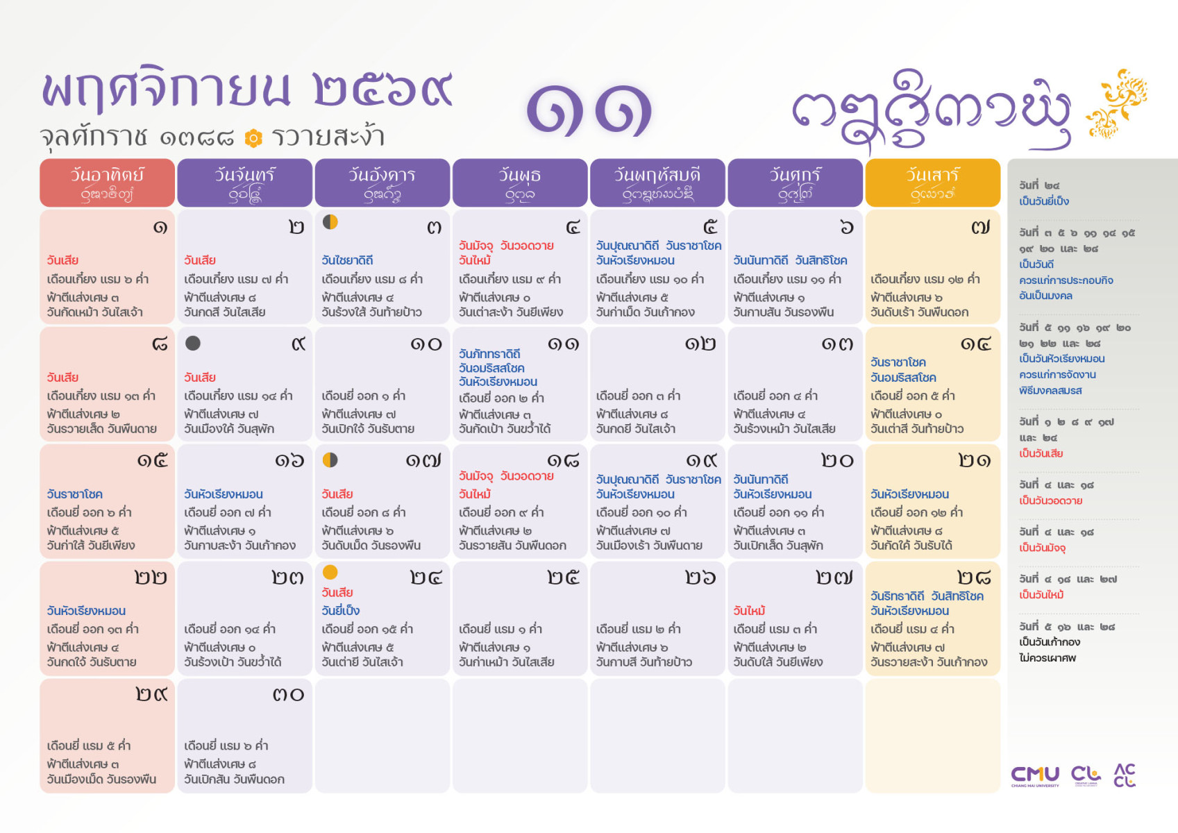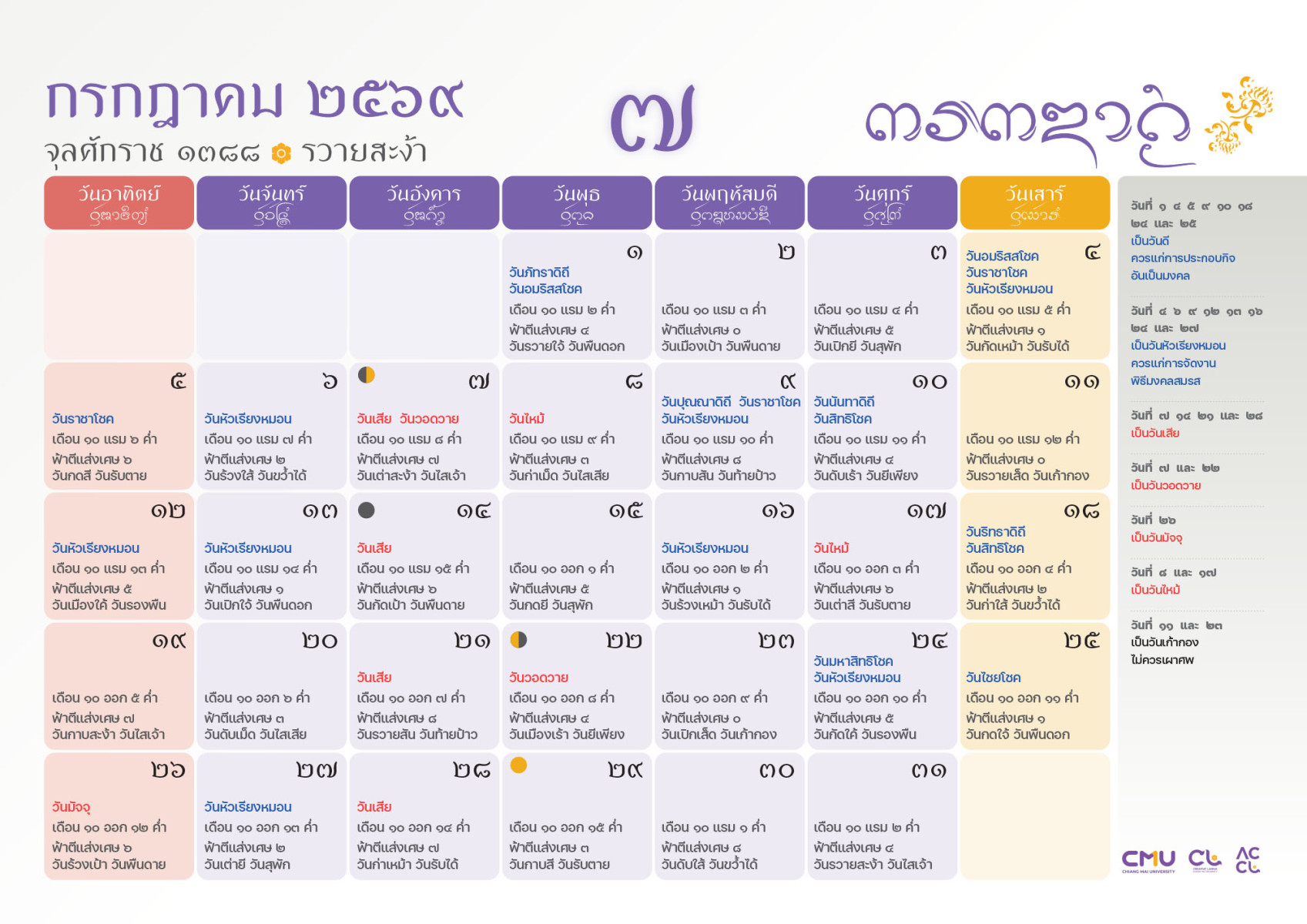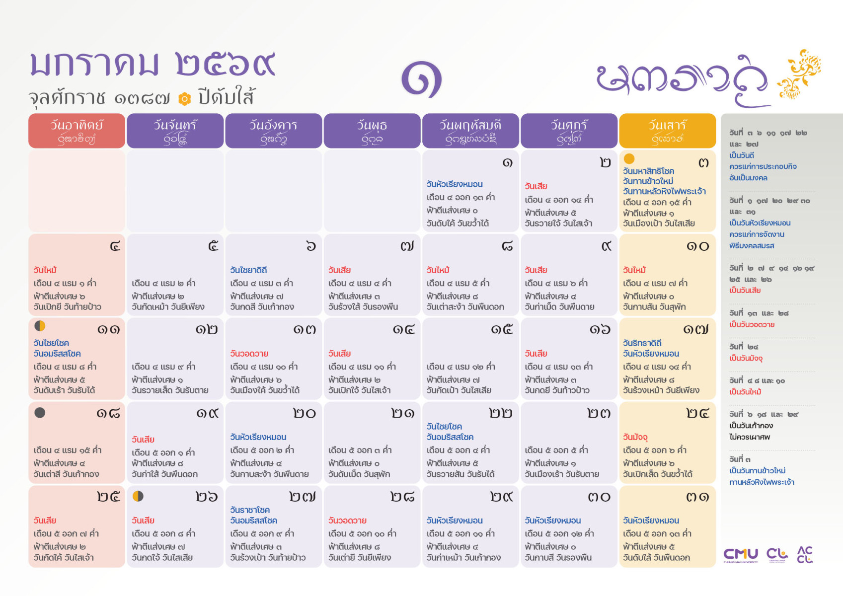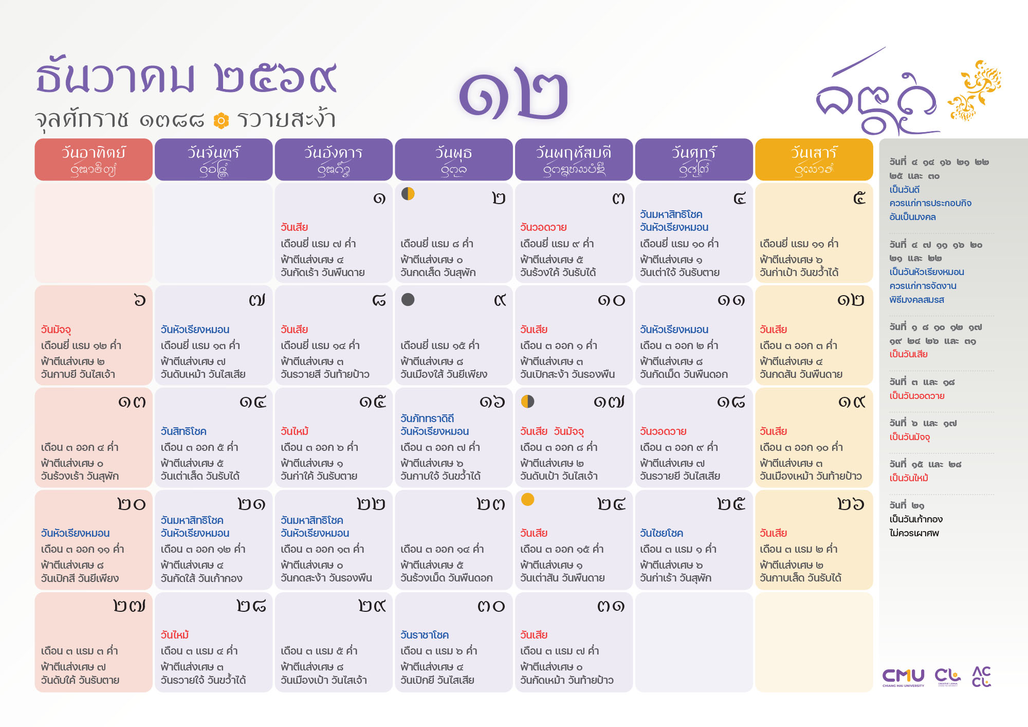 ดาวน์โหลดฉบับเต็มได้ที่: https://accl.cmu.ac.th/Lanna/calendarDownload/2569