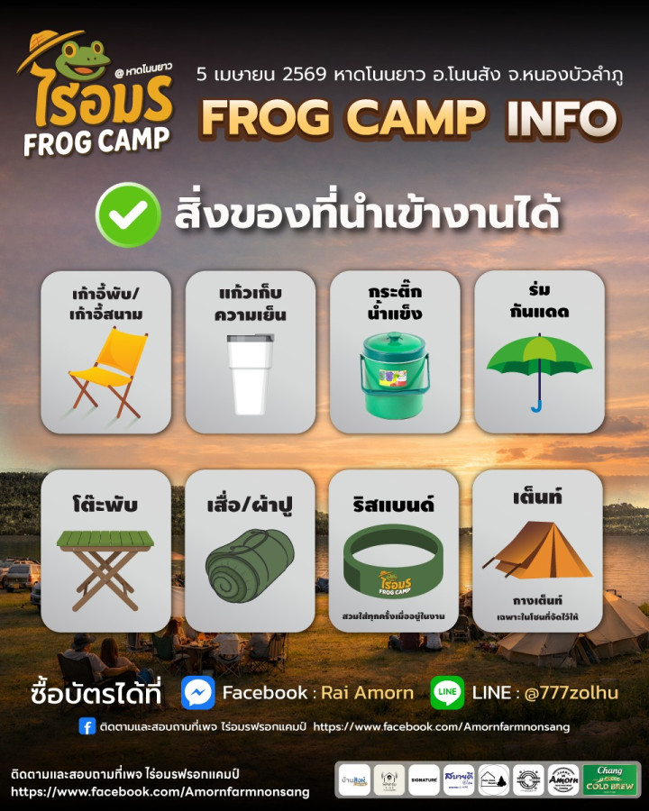 ไร่อมร FrogCamp @ หาดโนนยาว เทศกาลแคมป์ปิ้งดนตรีริมเขื่อนอุบลรัตน์ ที่สายชิลห้ามพลาด 🌅🎶🏕️